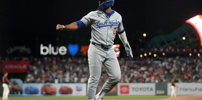 El doblete de Hernández puso a su equipo adelante en una quinta entrada de seis carreras, después de que los Dodgers pusieron fin a la faena del abridor Logan Webb.